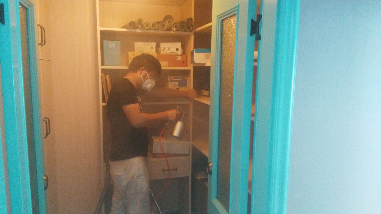 針對其結構特點及污染情況,我公司技術及施工人員采用專項專治的施工方案,針對重點污染區域,重點治理,例如鞋柜、兒童床、床墊。針對其墻面、沙發使用我公司研發的利純光觸媒進行甲醛清除,這些地方光照量較充足,便于光觸媒對甲醛的分解,對于刷漆的家具、書桌、衣柜、木門等采用甲醛清除劑進行處理,針對不同污染物,做分別處理。經過我公司重點治理,一周后復查結果各種有害物質含量均已達到國家標準以內,為業主清理甲醛,還顧客一個安全,健康的生活環境是我們全體工作人員的責任,下面為施工現場照片: